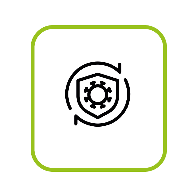 Proteção antiviral comprovada para colaboradores e pacientes.