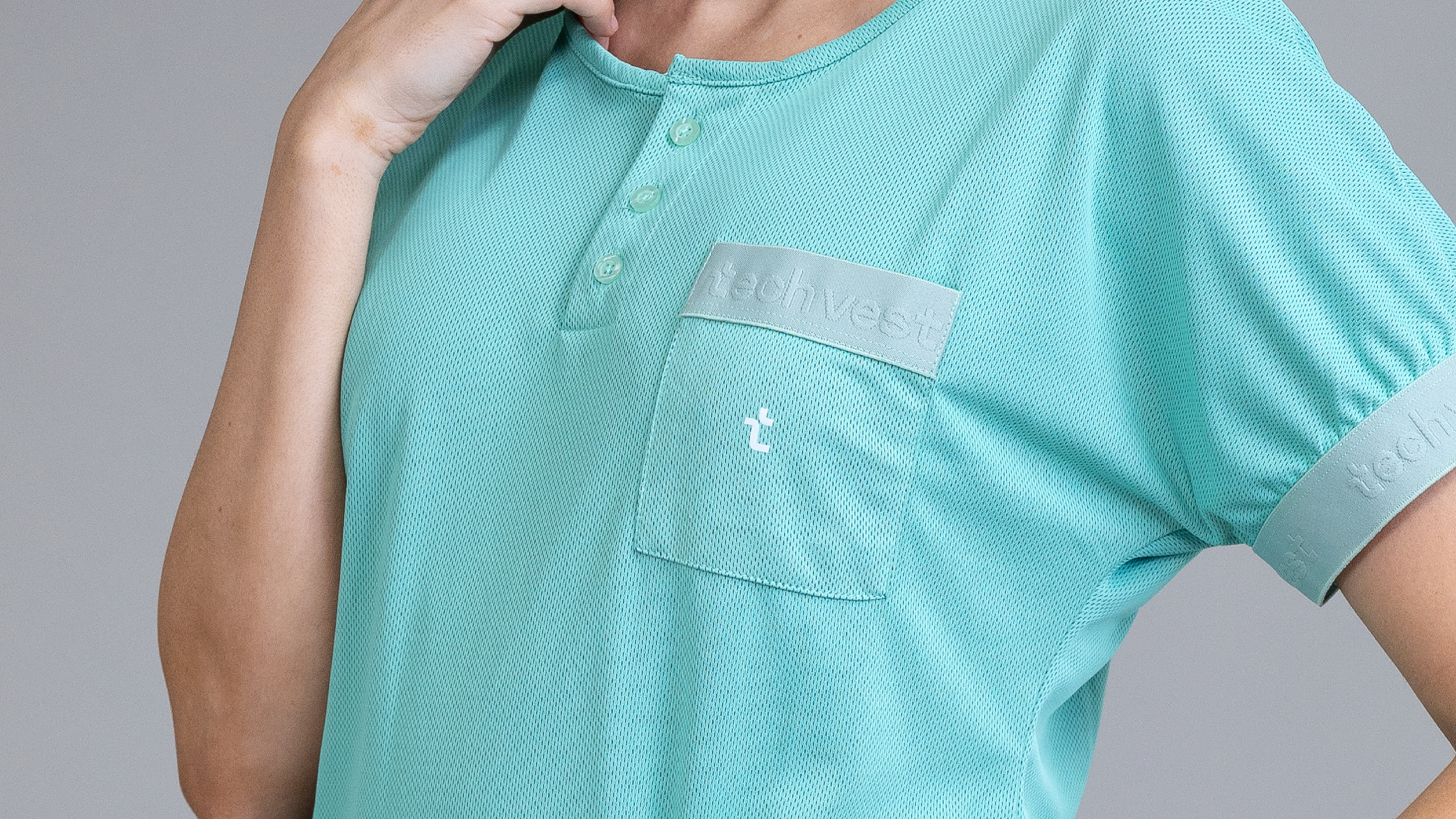 O tecido Easy Care mantém a equipe alinhada, sem aspecto amassado.